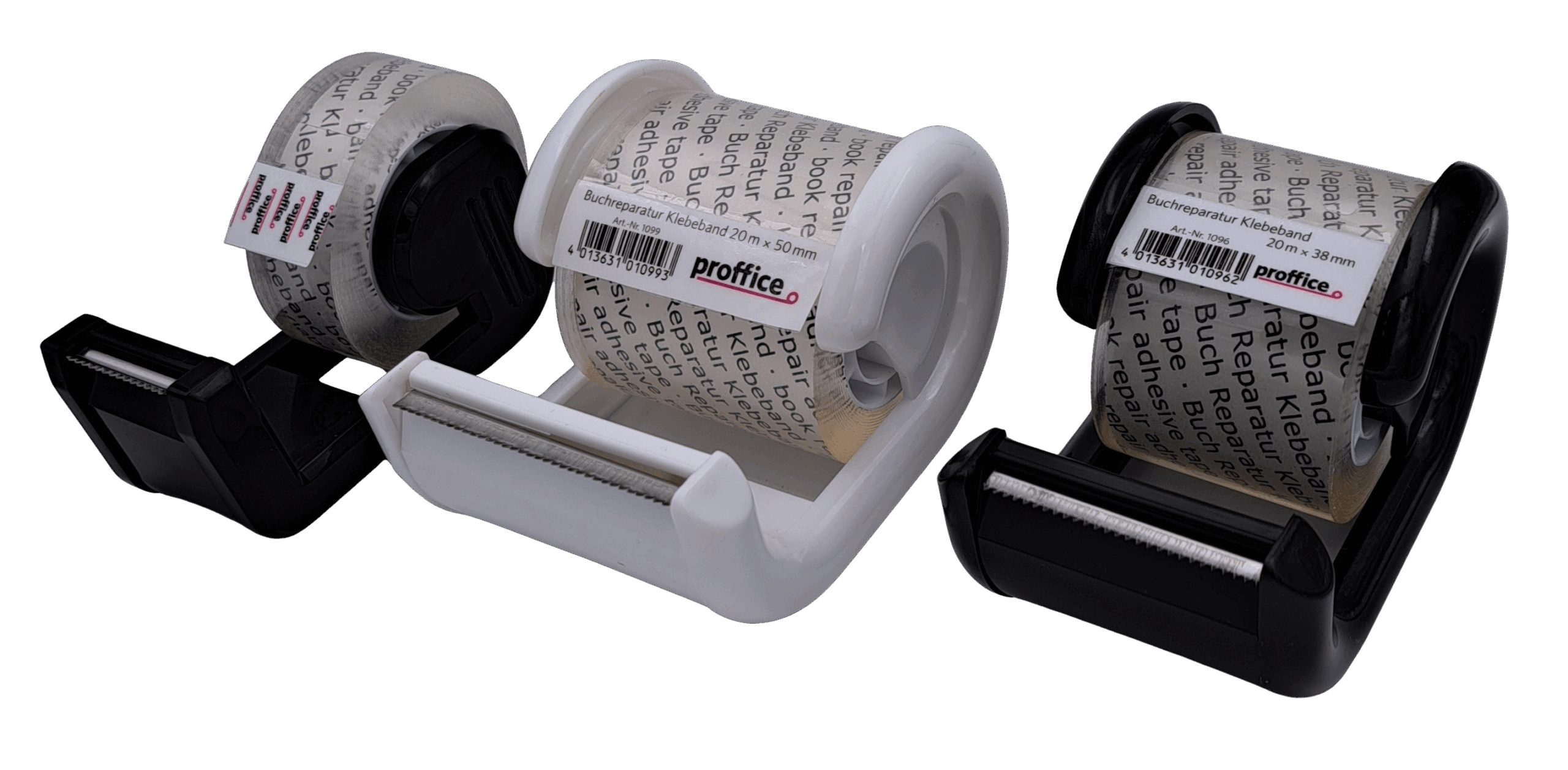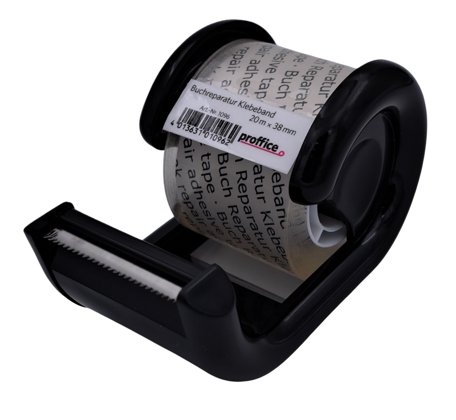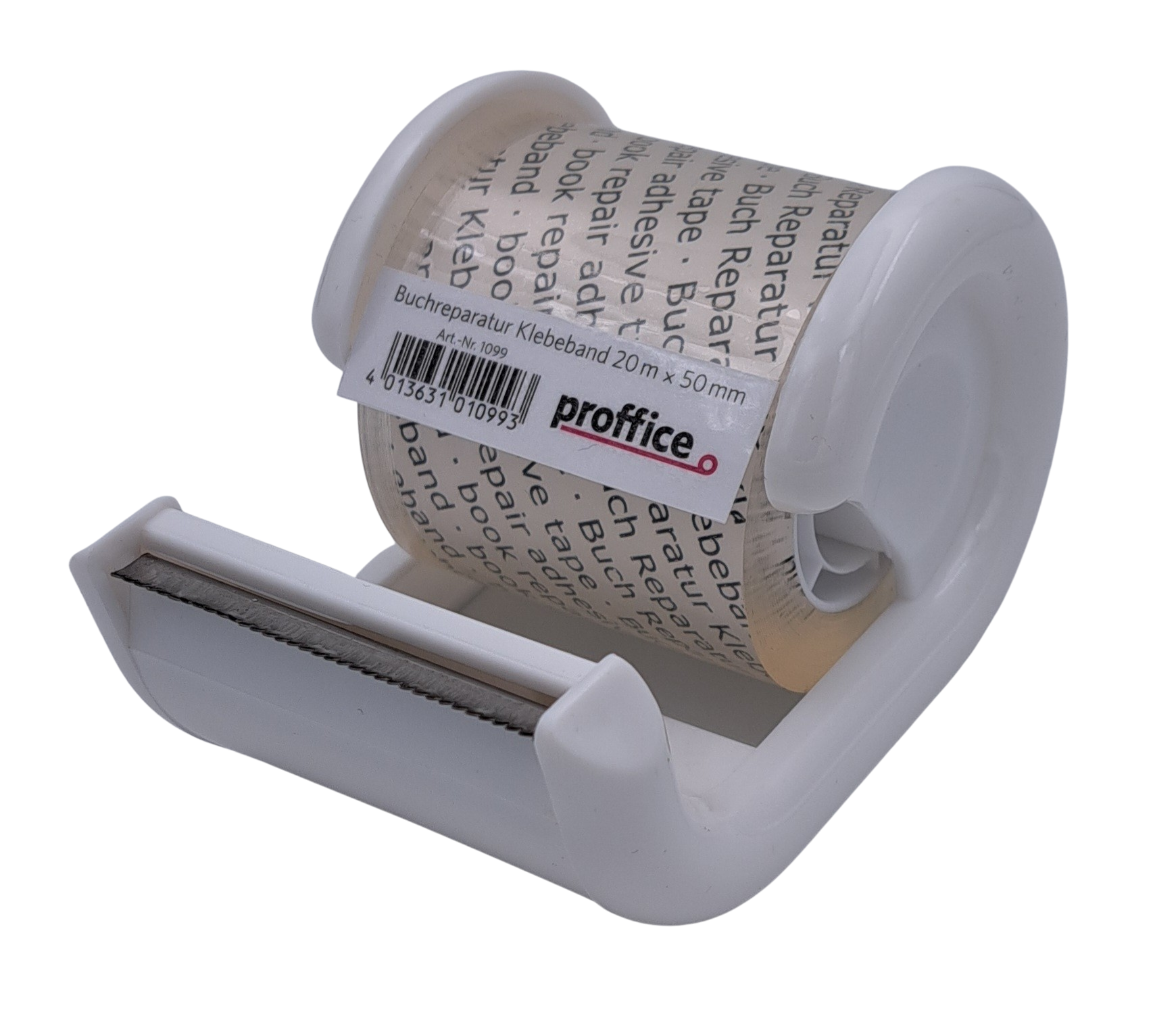 Buchreparatur Klebeband PP kristallklar mit 26mm Plastikkern im Handabroller