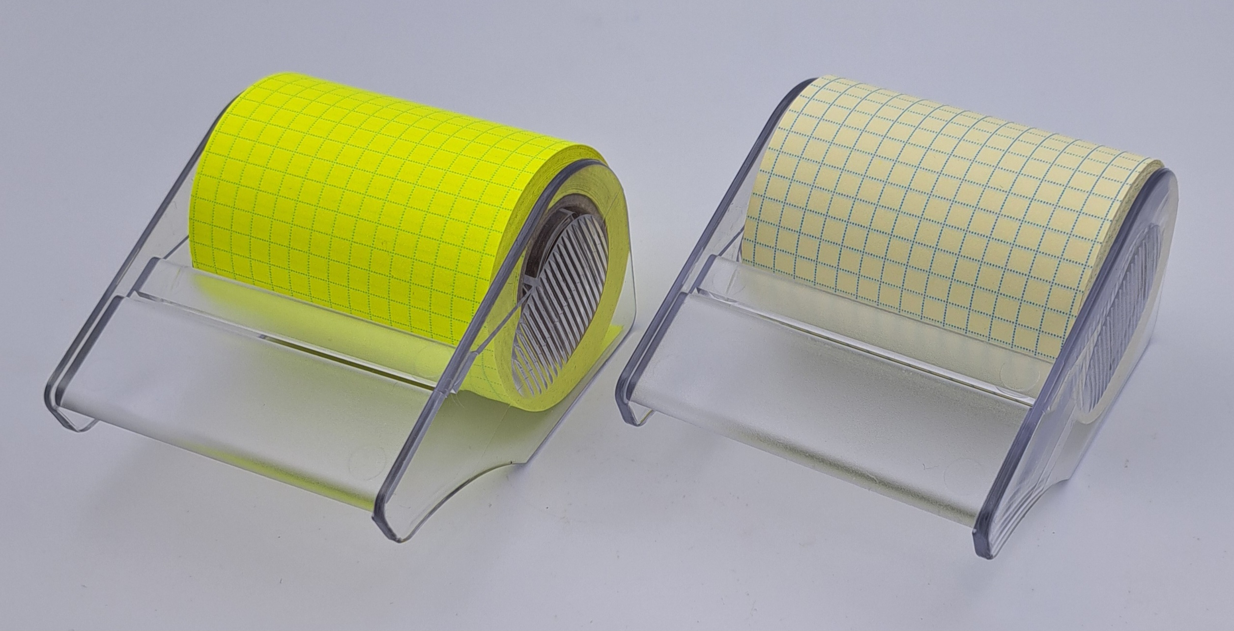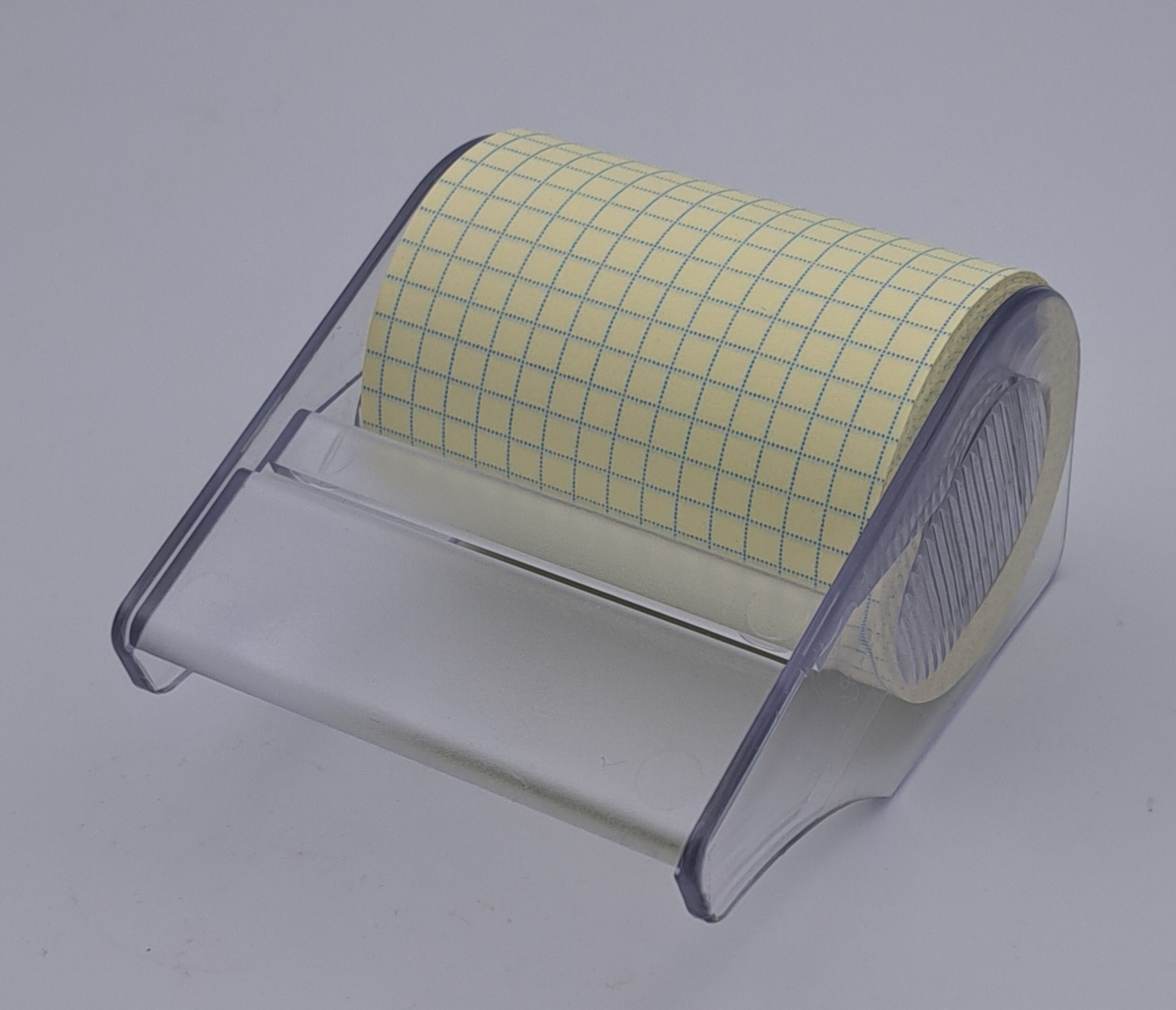 Haftnotizrolle kariert 60mm x 10m mit 26mm Pappkern im Halter transparent